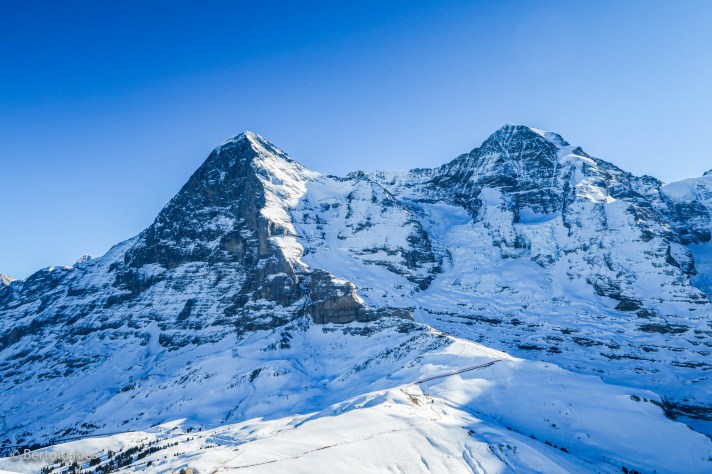Here the view towards the Eiger North Face and the Mönch; between the two, the Eiger Glacier.