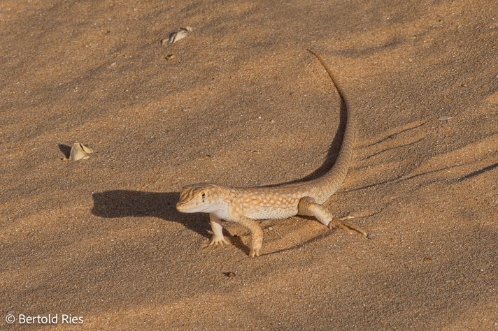 The Dopharagame is another endemic animal of the region. This one was kind enough to pose for a great portrait shot (above). I’d like to feature a few more raptiles: A Gecko sticking on a house wall, a Bosc’s Fringe-Toed Lizard (I guess) which I saw in the desert sand and a tiny 5-6 cm long mini lizard I saw in a park.